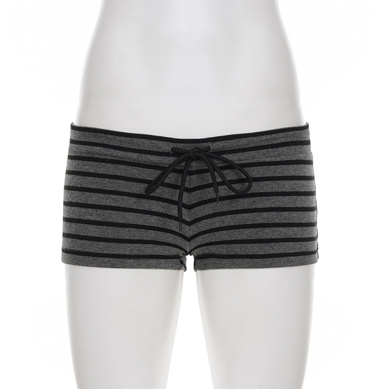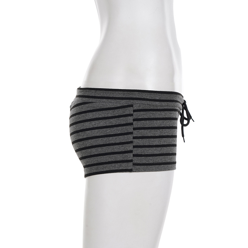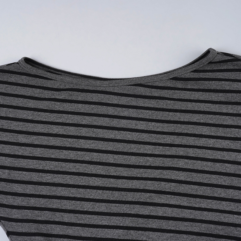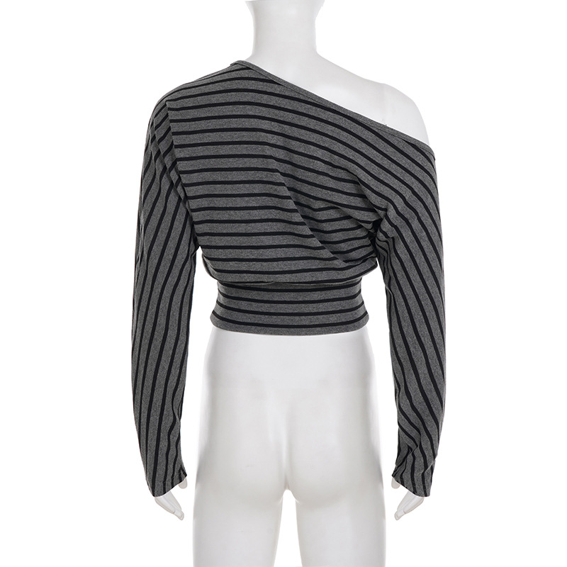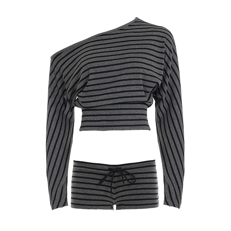 Womens Casual Striped Off-shoulder Long-sleeve Top And Shorts Set